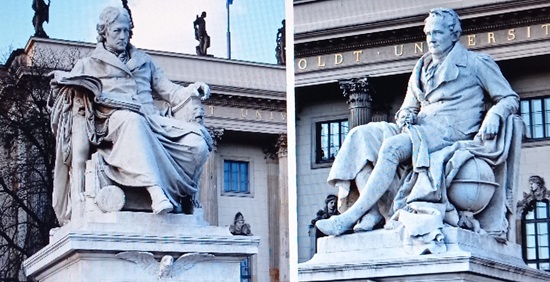 Die kostbaren Marmordenkmäler der Brüder Humboldt hatten den Zweiten Weltkrieg eingemauert überstanden und wurden schon frühzeitig freigelegt. Saurer Regen und Umweltverschmutzung haben ihnen zugesetzt, weshalb sie mehrfach restauriert und konserviert werden mussten. In der kalten und feuchten Jahreszeit werden sie durch Einhausungen geschützt, was man auch anderen, nicht minder wertvollen und gefährdeten Skulpturen unter freiem Himmel wie Friedrich Schiller auf dem Gendarmenmarkt oder den Schlossbrückenfiguren auch wünscht.