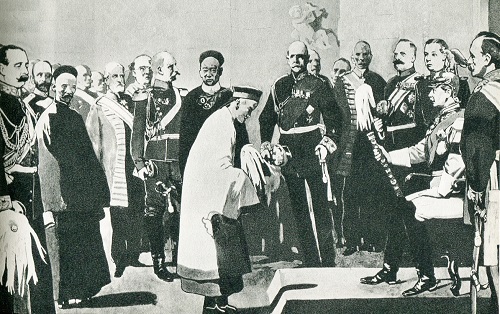 Der Bruders des Kaisers von China musste im September 1901 nach dem von deutschen und weiteren Truppen niedergeschlagenen Boxeraufstand in China im Neuen Palais Kaiser Wilhelm II. Abbitte leisten. Vor der Orangerie aufgestellte astronomische Instrumente aus Bronze waren nach der Niederschlagung des Boxeraufstandes von Peking nach Potsdam „verbracht“ worden. Der jugendliche Prinz entledigte sich seines Auftrags nach Beobachtung von Teilnehmern in würdiger und formvollendeter Weise und erwarb sich in der deutschen Öffentlichkeit Respekt und Sympathie. Der Prinz wurde mit den seinem Rang gemäßen Ehren behandelt, und Wilhelm II. stattete ihm sogar einen Höflichkeitsbesuch in der Orangerie ab.