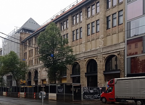 Nachdem 2012 ein Besitzerwechsel stattgefunden hatte, konnte der Um- und Neubau des Tacheles nach Plänen des Schweizer Architekturbüros Herzog & de Meuron Unter Wahrung des Denkmalschutzes beginnen. Der Auszug der bisherigen Nutzer verlief nicht ohne Proteste und Konflikte. Das untere Foto zeigt die Baustelle Ende Juli 2023.