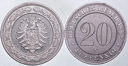 Bei den Deutschen rangieren die auch gut erforschten Reichsmünzen aus der Zeit ab 1871 ganz oben. Unter ihnen gibt es hoch bezahlte Raritäten wie dieses Zwanzig-Pfennig-Stück, das 1887 mit den zwei Sternen auf der Rückseite zur Erinnerung an den Umzug der Münze von Dresden nach Muldenhütten in einer Auflage von nur zehn Stück hergestellt wurde.
