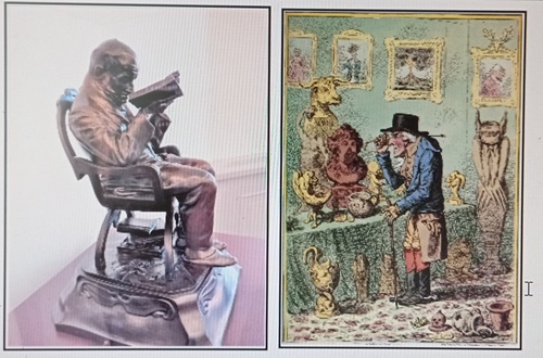 Der sprichwörtliche „kleine Moritz“ stellte sich im 19. Jahrhundert Münzsammler als schrullige alte Männer vor, die nichts Besseres zu tun haben, als in ihren Schätzen zu wühlen und andere für sich arbeiten lassen. Die kleine Bronzefigut schmückt den Studiensaal des Berliner Münzkabinetts.