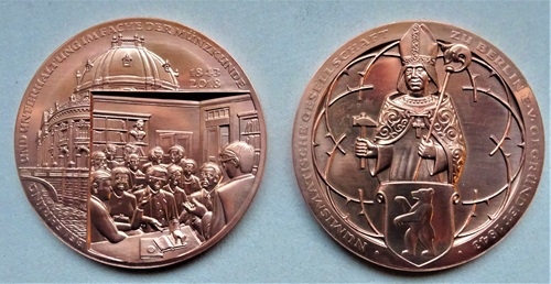 Zu ihrem 175-Bestehen hat die Numismatische Gesellschaft zu Berlin eine von Bodo Broschat geschaffen Medaille herausgegeben, die einen Blick in den Tagungsort, den Studiensaal des Münzkabinetts im Bode-Museum auf der Museumsinsel, mit dem Bildnis des Heiligen Eligius verbindet, der als Schutzpatron der Goldschmiede und Münzarbeiter verehrt wurde und wird.