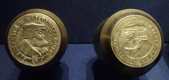 Namentlich Kursachsen, die Wiege und mit seiner Residenz- und Universitätsstadt Wittenberg Ausgangspunkt der Reformation von 1517, tat sich vor allem in den Jahren 1617 und 1630 durch Gedenktaler und andere Münzen sowie Medaillen hervor, die die Glaubensstärke des Herrscherhauses unterstreichen. So findet man auf Gold- und Silbermünzen von 1617 Brustbilder des Kurfürsten Friedrich des Weisen, der als Luthers Beschützer in die Geschichte einging, und seines Nachfahren Johann Georg I. Außerdem gibt es Medaillen, auf denen Johann Georg I. und Martin Luther zusammen dargestellt sind, was Kontinuität in Glaubensfragen unterstreichen soll. Die Stücke sind frühe Beispiele für das Bestreben, historische Ereignisse auf Münzen und Medaillen zu verewigen und Fürsten damit in ein positives Licht zu rücken.