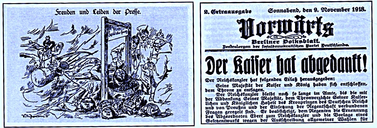 Unter die Guillotine mussten in der Kaiserzeit unbotmäßige Journalisten war nicht, aber die Staatsmacht hat ihnen das Leben und Arbeiten schwer gemacht wo es nur ging. Nach der Abdankung Wilhelms II. durfte man über ihn ohne Scheuklappen berichten.