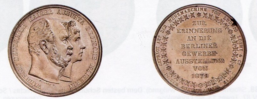 Der Besuch des Kaiserpaares Wilhelm I.und Augusta 1879 in der Berliner Maschinen- und Rüstungsfabrik Ludwig Loewe wurde durch eine Medaille dokumentiert.