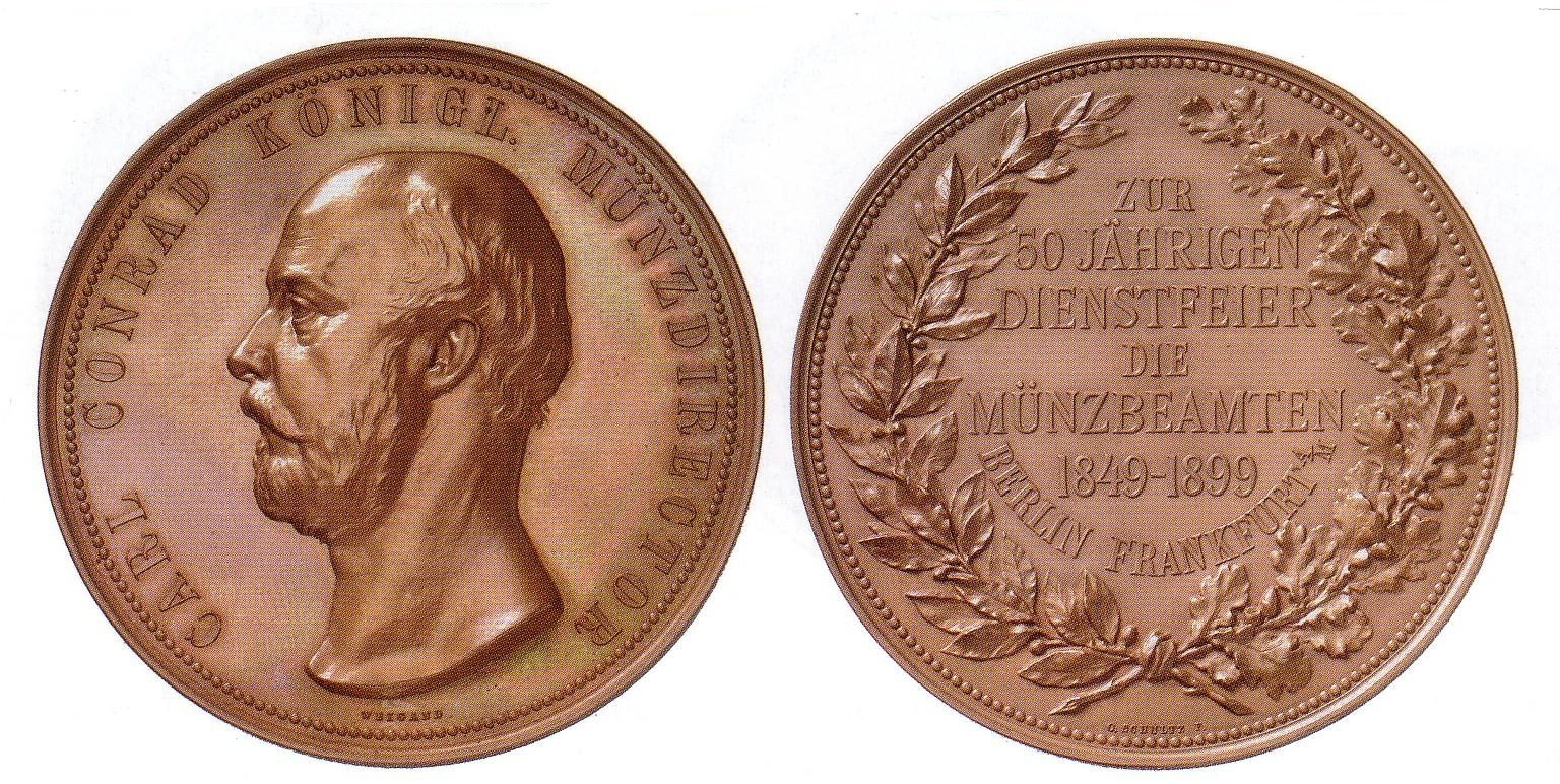 Dem Direktor der Berliner Münze, Carl Conrad, hat man 1899 eine wenig ansehnliche Medaille gewidmet.