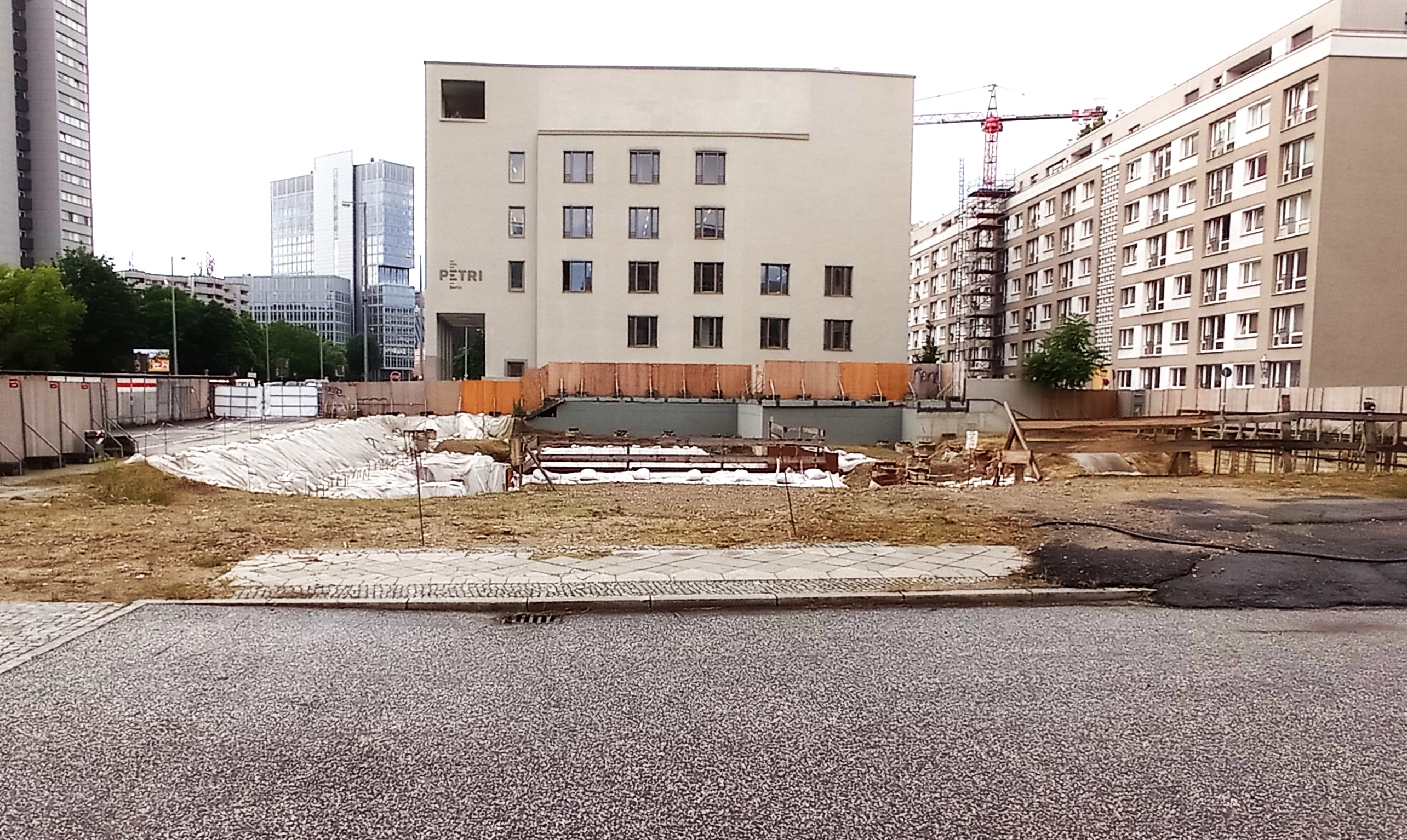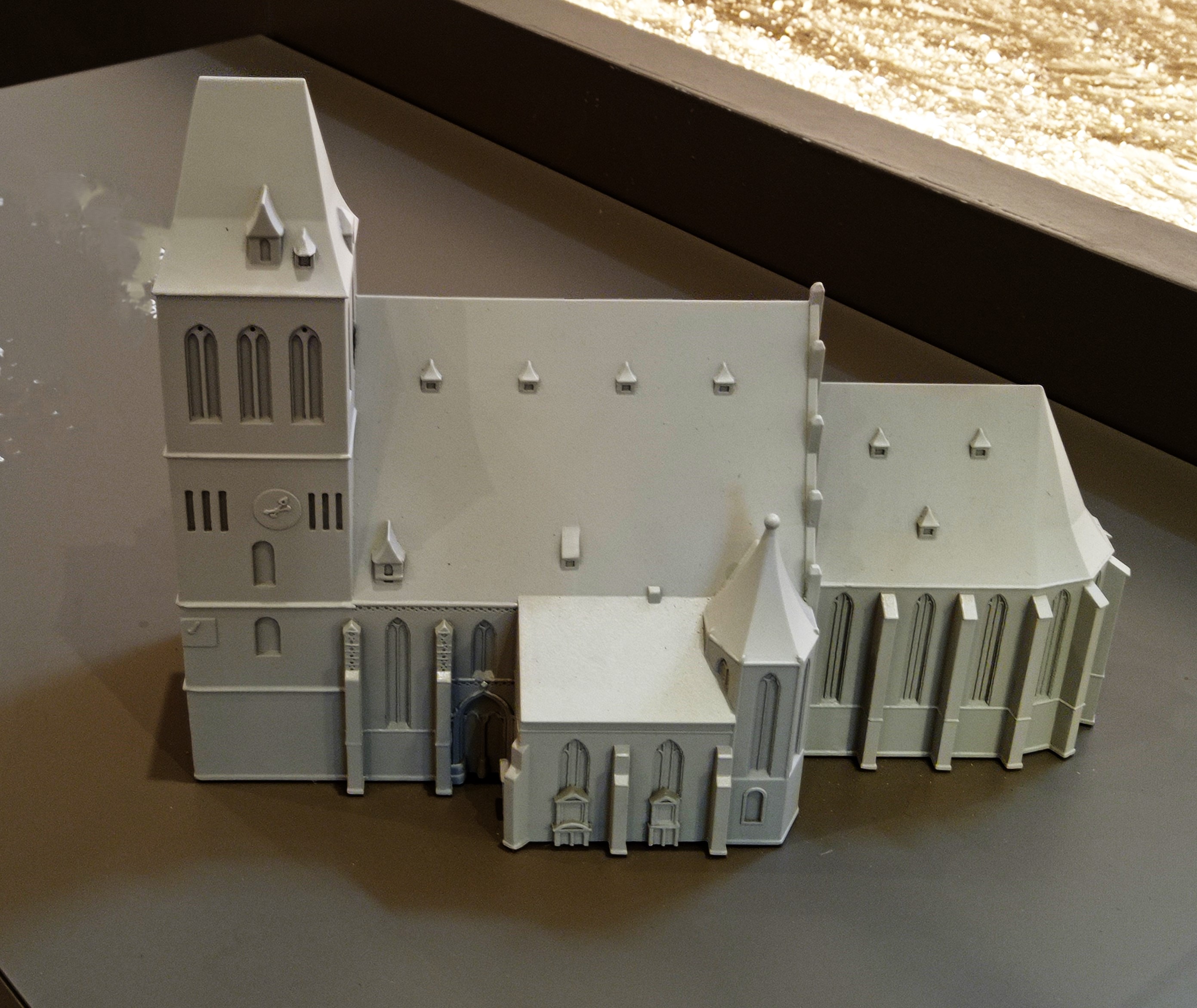 Das Modell erinnert an das wechselvolle Schicksal der lässt der mittelalterlichen Petrikirche. Im Weltkrieg schwer beschädigt, wurde die Ruine 1964 abgerissen.