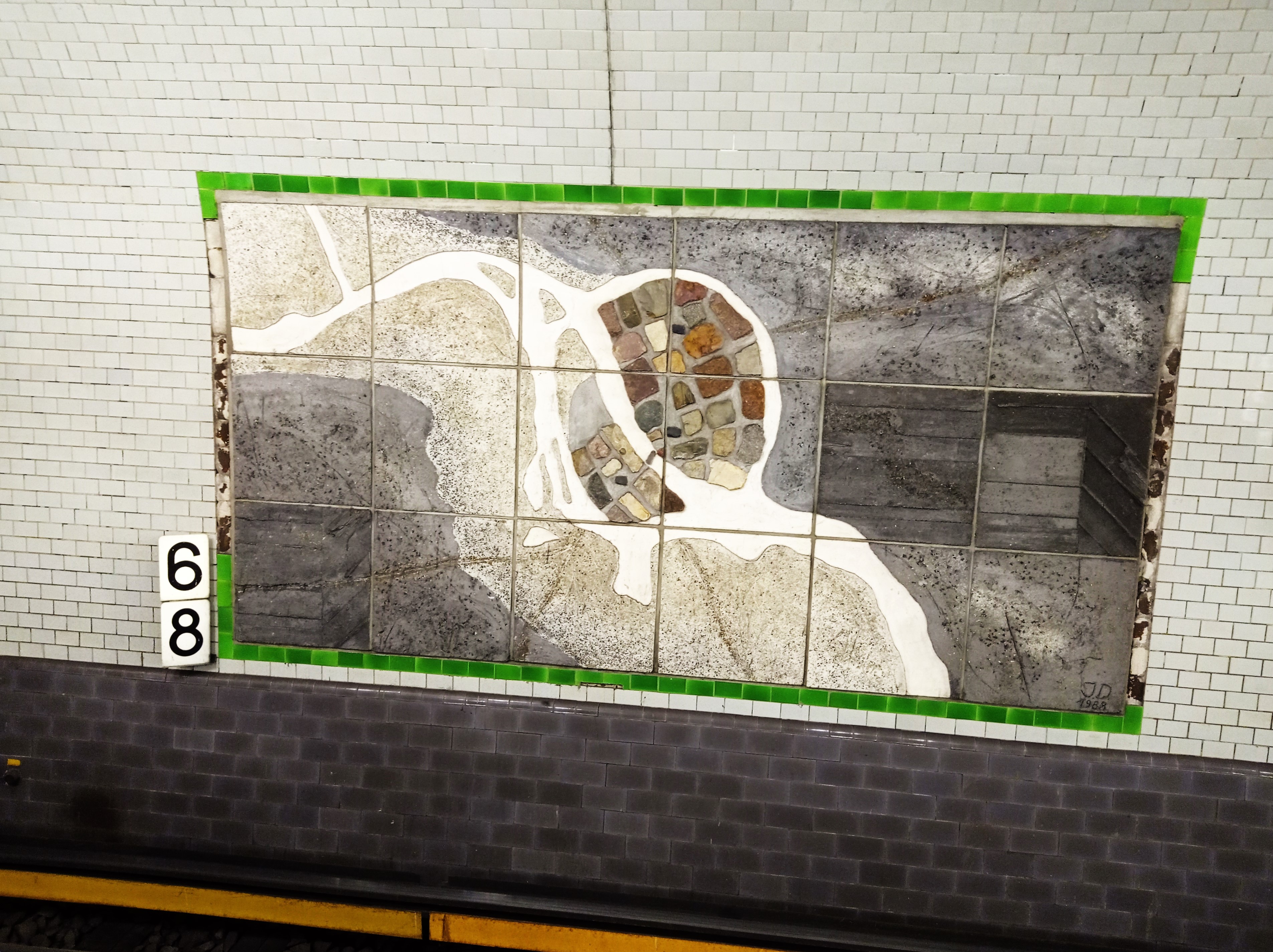 Wie sich Berlin vom Fischerdorf zur Großstadt entwickelt hat, schildern Wandreliefs im U-Bahnhof Märkisches Museum.