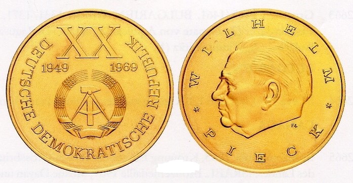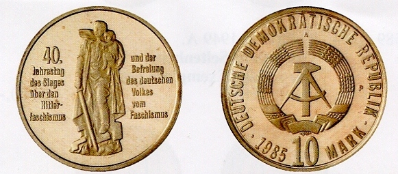 Nach dem Ende der DDR im Münzhandel angebotenen Goldmedaillen dienten als Geschenke an hohe Parteifunktionäre und Staatsgäste und waren für normale DDR-Bewohner unerreichbar. Das gilt auch für den Goldabschlag des Zehn-Mark-Stücks von 1985 zum 40. Jahrestag der Befreiung vom Hitlerfaschismus (Auflage 266 Exemplare), der an Prominente vergeben wurde und auch heute hoch gehandelt wird.