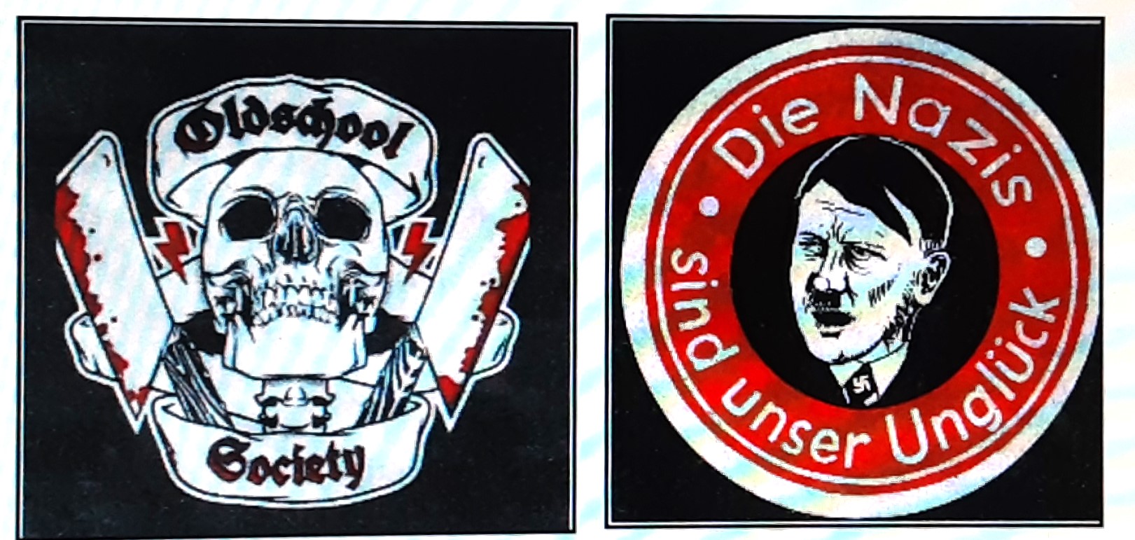 Aufkleber dieser Art für eine neue Diktatur und gegen den Hitlerfaschismus finden sich bei uns überall.