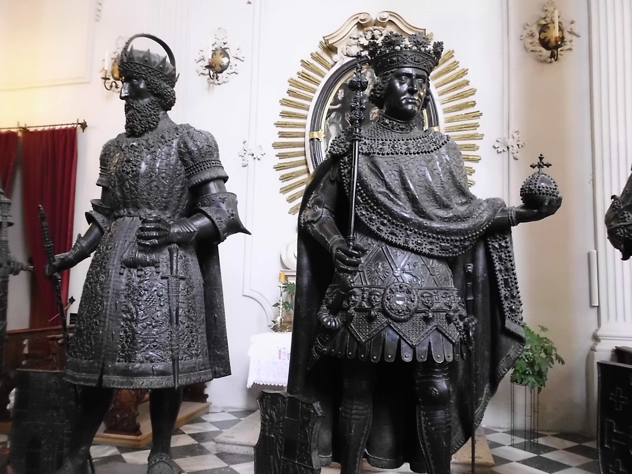 Eine besonders aufwendig gestaltete Anlage für einen einzigen Herrscher befindet sich in der Hofkirche in Innsbruck. Rund um das Grab des 1519 verstorbenen römisch-deutschen Kaisers Maximilian I. halten überlebensgroße Bronzefiguren Wache. Sie verkörpern Vorfahren, Verwandte und berühmte Vorbilder des Monarchen, den man „der letzte Ritter“ nannte. Allerdings ist er nicht im Innsbrucker Prunkgrab bestattet, sondern in seiner Taufkirche, der St. Georgskapelle der Burg von Wiener Neustadt in Niederösterreich, etwa 50 km südlich von Wien entfernt. Dort ruht der ehemals mächtigste Monarch des spätmittelalterlichen Europa unter den Stufen des Hochaltars.