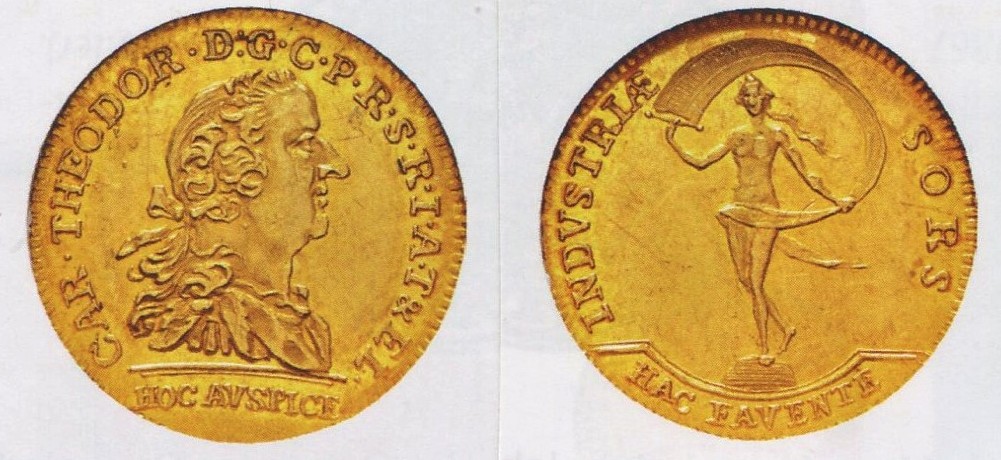 Man möge sich nicht auf das Glück verlassen, sondern es sich mit Fleiß verdienen, mahnt der hochseltene Lottodukat aus dem späten 18. Jahrhundert mit dem Kopf des pfälzischen Kurfürsten Carl Theodor und der Fortuna mit dem Segel.