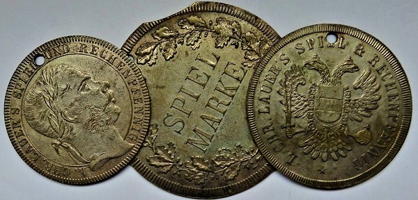 In Österreich billig gemachte Marken mit dem Kopf von Kaiser Franz Joseph und dem Doppeladler wurden beim Spiel eingesetzt.