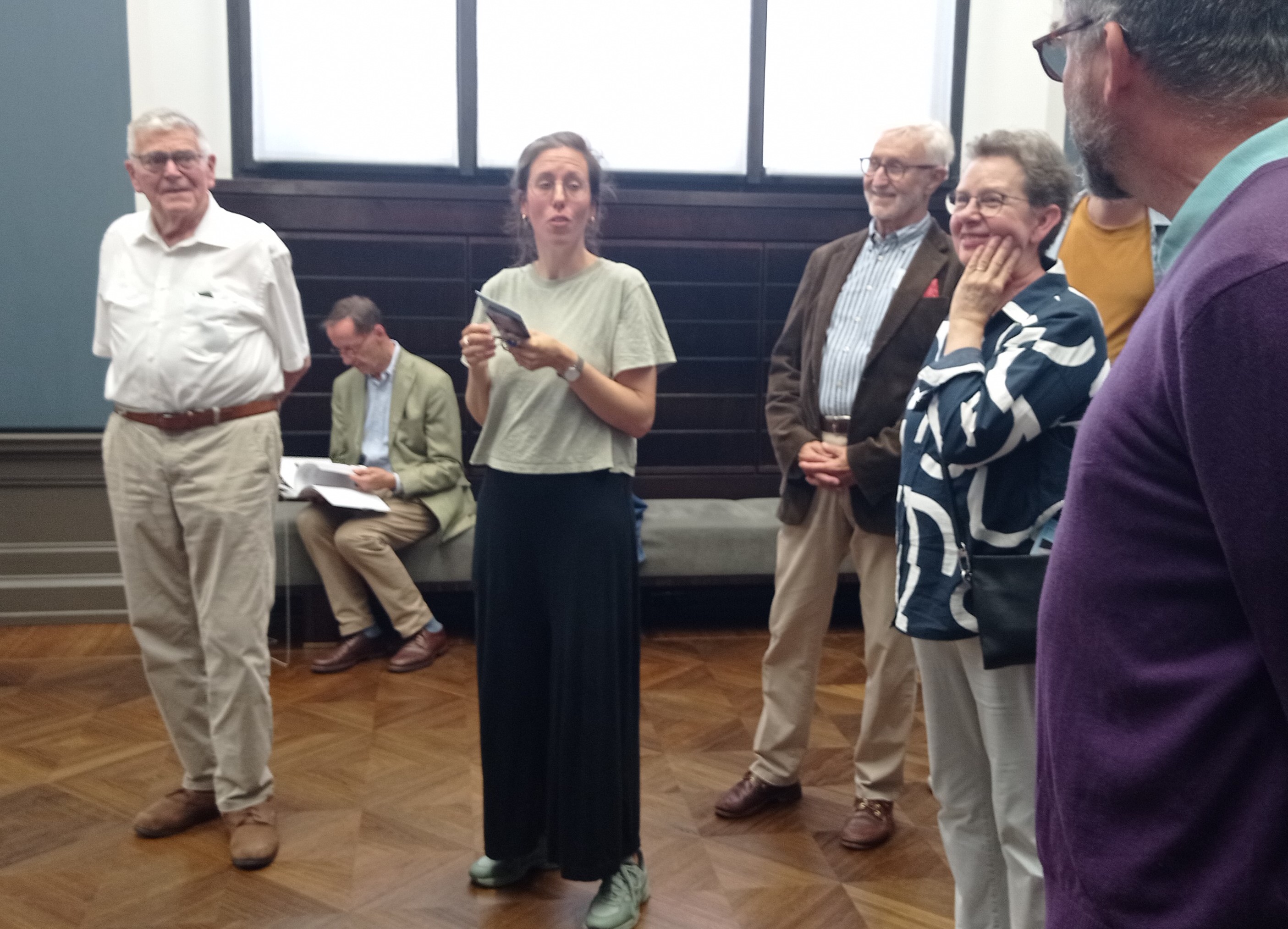 Obwohl mit Kunstgeschichte vertraut, war auch für Mitglieder der Schadow Gesellschaft Berlin vieles neu, was Sintje Guericke (im oberen Foto Mitte) über die in der Alten Nationalgalerie gewürdigte Camille Claudel und ihren deutschen Bildhauerkollegen Bernhard Hoetger zu berichten wusste.
