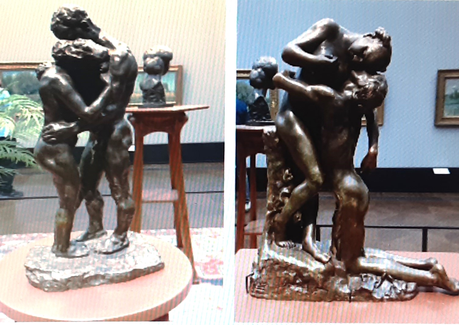 Bernhard Hoetgers „Abschied“ zeigt innige fast unbewegliche Zweisamkeit, währen die daneben stehende Gruppe „Die Hingabe“ von Claude Claudel schildert, wie schwer den Liebenden fällt, voneinander zu lassen.