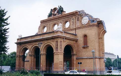 Der 1841 errichtete und dreißig Jahre später von dem Architekten Franz Schwechten, dem Erbauer der Kaiser-Wilhelm-Gedächtniskirche, im so genannten Rundbogenstil ausgebaute Kopfbahnhof wurde in der Kaiserzeit scherzhaft Tor des Südens genannt, weil von hier aus Züge bis nach Rom, Nizza und Istanbul abfuhren. Innen und außen war das international bekannte Bahnhofsgebäude mit reich Skulpturen und Wandgemälden geschmückt. Im Zweiten Weltkrieg stark zerstört, wurden seine Reste bis auf den repräsentativen Eingangsbereich um 1960 abgerissen. Wie die für die Sanierung des Torsos zuständige Architektin Christina Petersen betonte, wurde das Mauerwerk in den vergangenen Jahren gereinigt und ausgebessert. Die Wunden des Krieges seien sichtbar geblieben, lediglich hätten Bauleute lockere Steine mit einem Spezialmörtel gefestigt und Mauerkronen durch eine Metallabdeckung vor eindringendem Regen geschützt. Da sich die bronzenen Allegorien von Tag und Nacht auf dem Dach des Bahnhofsgebäudes in einem desolaten Zustand befunden hätten, seien sie durch Kopien ausgetauscht worden. Die überlebensgroßen Originalfiguren des Bildhauers Ludwig Brunow könne man im Deutschen Technikmuseum an der Trebbiner Straße als Beleg für den hohen künstlerischen Aufwand betrachten, den man nach der Reichsgründung von 1871 mit solchen Verkehrsbauten betrieben hat. Die Reste der aus gelbem Backstein errichteten Eingangshalle mit ehemals reichem Skulpturenschmuck lassen heute zudem noch ahnen, welch hohen Stellenwert der Anhalter Bahnhof auch als Empfangshalle für Staatsgäste besessen hat, die die kaiserliche Reichshauptstadt besucht haben.