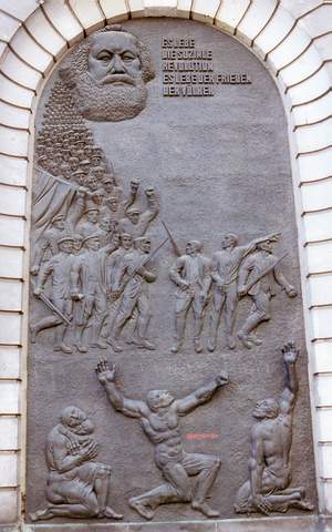 Dass der Marstall eine bewegte Geschichte hatte, zeigen Reliefs des Bildhauers Gerhard Rommel aus der Spätzeit der DDR. Sie erzählen beiderseits der Eingangsportals zum Palast der Republik hin aus den Tagen der Novemberrevolution 1918, als hier die Zentrale des bewaffneten Widerstandes war, verkörpert durch den Arbeiter-und-Soldatenrat. Auf einer dieser riesigen Bronzeplatten schwebt der Kopf von Karl Marx, der den bewaffneten Proletariern die Richtung weist. Da es sich bei den Reliefs um historische Dokumente handelt, die zur Geschichte des Marstalls gehören, wurden sie beim jetzt beendeten Umbau nicht angetastet.