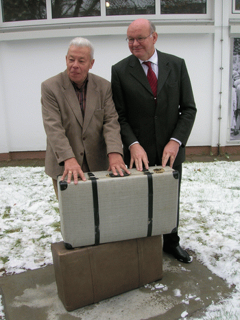 Dass sein Koffer, mit dem er und seine Frau vor 47 Jahren nach West-Berlin geflüchtet waren, einmal zu Denkmalehren kommen würde, hätte sich Hans-Dieter Dubrow niemals träumen lassen. Gestern weihte der Präsident des Berliner Abgeordnetenhauses Walter Momper eine bronzene Nachbildung dieses damals mit Wäsche, Besteck und anderen Habseligkeiten gefüllten Behälters vor der Erinnerungsstätte Notaufnahmelager Marienfelde ein. Das symbolträchtige Denkmal für Abschied und Neubeginn zu ebener Erde wurde von dem Bildhauer und Kunstgießer Marco Flierl dem Original aus Hartpappe nachgestaltet.