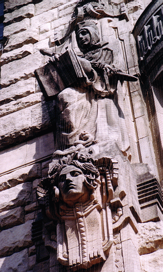 Von den Architekten Heinrich Reinhardt und Georg Süßenguth, den Gewinnern eines künstlerischen Wettbewerbs, entworfen und 1911 bis 1916 durch Heinrich Seeling erweitert, ist das Rathaus ein markantes Beispiel für den Sieg des Jugendstils kurz nach der Jahrhundertwende. Ursprünglich hatte man an eine neogotische Fassade der üblichen Art gedacht, doch setzte sich der Magistrat mit seiner Forderung durch, den damals noch recht umstrittenen, aber ganz modernen Sezessionsstil, wie man den Jugendstil auch nannte, anzuwenden. So überziehen die für diese Kunstrichtung typischen floralen Ornamente üppig und verwirrend zugleich die Sandsteinfassade des fast 4,2 Millionen Goldmark damals sehr teuren Prachtbaues, der sich mit einer Länge von 70 Metern an der heutigen Otto-Suhr-Allee erstreckt. Dazu kommen verschiedene Wappenschilder sowie vollplastische Figuren der Gerechtigkeit und Weisheit und Bildnisse verschiedener Berufsgruppen und Stände. Nicht zu übersehen sind die Köpfe mit milde bis grimmig dreinblickenden Gesichtern, die die Schlußsteine über den Fenstern bilden.