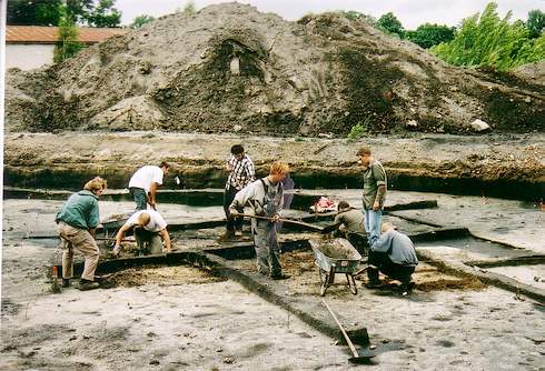 Großes Aufsehen bei den Ausgräbern erregte eine wohl als Bauopfer vergrabene Kinderleiche, die unter der Schwelle eines Hauses gefunden wurde. Vielleicht handelt es sich bei dem 50 Zentimeter großen, noch gut erhaltenen Skelett um eine Totgeburt, die man zur Abwehr böser Geister dem Erdreich übergab. Eine ähnliche Aufgabe hatte wohl auch ein Hund, dessen Knochen man an einer ähnlichen Stelle gefunden hat.