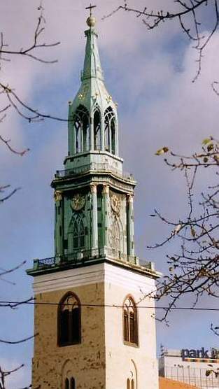 In hellen Farben zeigt sich wieder der Turm der mittelalterlichen Marienkirche an der Karl-Liebknecht-Straße im Bezirk Mitte. Fast fünf Jahre lang zeigte sich der 91 Meter hohe Turm verhüllt. Hinter bemalten Werbeplanen hatten Bauleute und Restauratoren das Mauerwerk saniert und auch farblich aufgefrischt. Restauriert wurde auch die mit Kupferblech verkleidete Kirchturmspitze, die vor über 200 Jahren im damals beliebten Stil der Neogotik gestaltet und mit vergoldeten Elementen geschmückt wurde.