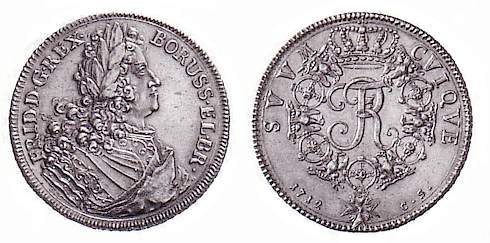 Der erste preußische König Friedrich I. signierte seine Taler mit dem Kürzel FR (Fridericus Rex).