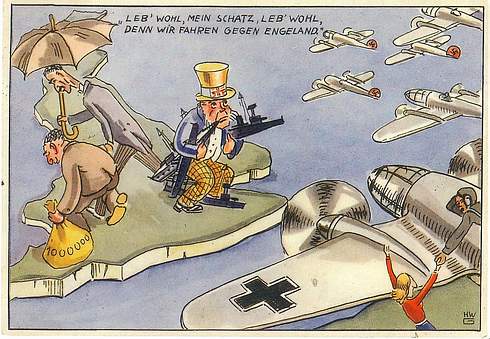 Reiche Juden verlassen England, das von der deutschen Luftwaffe angegriffen wird. Deutsche Postkarte aus dem Jahr 1940. (Foto: Museum für Kommunikation)