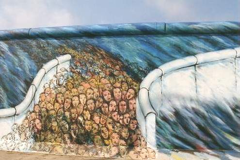 Bunt bemalt, aber restaurierungsbedürftig ist die East-Side-Gallery,