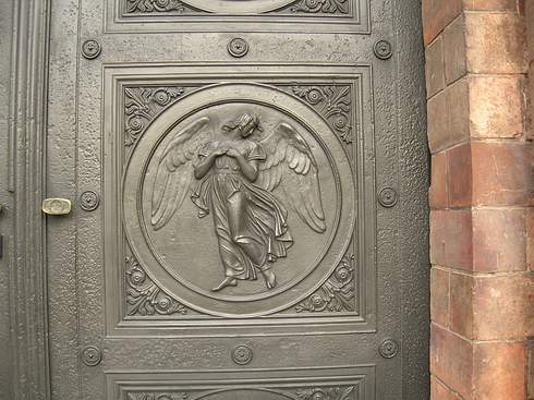 Wer an Karl Friedrich Schinkels Friedrichswerderscher Kirche in der Mitte der Stadt vorbei geht, wird vielleicht sehen, dass die mit Engeln geschmückten Eingangstüren neuerdings eine anthrazitfarbene Tönung angenommen haben. Jahrelang bot sich das zweigeteilte Portal in hässlicher graugrüner Farbe dar, ein Anblick, der überhaupt nicht zu den edlen Kunstwerken passte, die im Inneren des Gotteshauses aufgestellt sind. Es wurde Zeit, dass die Staatlichen Museen zu Berlin Preußischer Kulturbesitz, die in der neogotischen Kirche Zeugnisse der Bildhauerkunst aus der Zeit vor und nach 1800 zeigen und damit auch ihre Reverenz an Schinkel und seine Zeitgenossen erweisen, sich des ziemlich verschmutzten Portals direkt an der stark befahrenen Oberwallstraße, schräg gegenüber dem Außenministerium, annehmen.