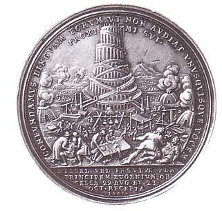 Auf einer Medaille von 1708 anlässlich der Eroberung der Stadt Lille durch den Prinzen Eugen erscheint der Turm zu Babel als warnendes Gleichnis. (Foto: Caspar)