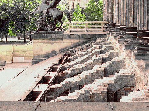 Während der Wiederaufbau des Neuen Museums hinter langen Plastikplanen Fortschritte macht und dort demnächst mit dem Bau der James-Simon-Galerie als zentrales Eingangsgebäude für alle fünf Häuser auf der Museumsinsel begonnen wird, kann man bei Rekonstruktionsarbeiten an Schinkels Altem Museum zuschauen. Zur Zeit ist die riesige Freitreppe abgetragen, über die man sonst in den klassizistischen Säulenbau am Lustgarten, schräg gegenüber vom Dom, gelangt. An ihrer Stelle kommt man über zwei provisorische Holzstiegen in das Museum. Wie in dem für die Immobilien der Stiftung Preußischer Kulturbesitz zuständigen Bundesamt für Bauwesen und Raumordnung (BBR) zu erfahren ist, wird die aus Granitstufen bestehende Treppe von einer noch aus Schinkels Zeiten stammenden Konstruktion aus Ziegelmauerwerk getragen, in die man hineinschauen kann, solange die Stufen abgetragen sind.