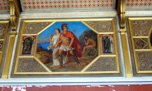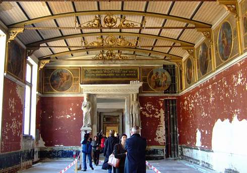Wer durch das Neue Museum geht, wird in verschiedenen Sälen noch recht umfangreiche Spuren der einstigen spätklassizistischen Ausstattung in Form von Wandbildern, Reliefs, Säulen, Inschriften und vergoldeten Verzierungen sehen. Es gibt aber auch Abschnitte wie das ehemals reich dekorierte Treppenhaus, die infolge der Kriegszerstörung nicht mehr existieren und vom Architekten neu in Anlehnung an die verlorene Form gestaltet wurden.