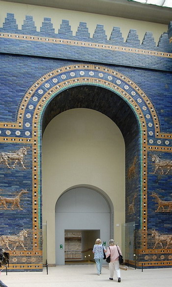 Die Ausstellung der Staatlichen Museen Preußischer Kulturbesitz, des Musée du Louvre in Paris und des British Museum in London richtet gleich eingangs den Blick auf Wurzeln unserer abendländischen Kultur. Zu sehen sind, in Stein gemeißelt, jene Götter, zu denen die zwischen Euphrat und Tigris lebenden Babylonier beteten. Ihnen gegenüber tritt die weltliche Macht. Einer von den Königen, Nebukadnezar II. (604-562 vor Christus), hat sich in einem Keilschrifttext am Ischtartor verewigt. Die blau und gelb gehaltenen Wände sind übersäht mit Löwen, Stieren und Greifen als Sinnbilder für Macht und Größe. Schaut man genau hin, dann erkennt man, dass die bunt glasierten Reliefs aus tausenden Einzelteilen bestehen. Vor hundert Jahren wurden diese und viele andere Relikte von dem deutschen Archäologen Robert Koldewey (1855-1925) und weiteren Archäologen entdeckt, ausgegraben und nach Berlin geschafft. Im Pergamonmuseum hat man unter Verwendung der sorgsam zusammengefügten Einzelteile eine neue Prozessionsstraße samt Eingangstor aufgebaut. Dieses Bauwerk ist „das“ Highlight im Vorderasiatischen Museum, welches im Pergamonmuseum, wenige Schritte vom Pergamonaltar entfernt, unzählige Besucher anlockt.