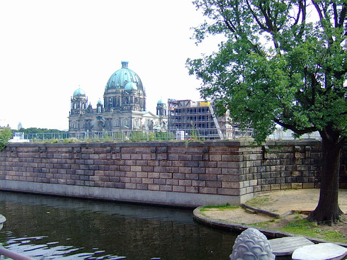 Das 1897 von Kaiser Wilhelm II. eingeweihte Reiterdenkmal Kaiser Wilhelm I., der 1888 starb, auf dessen Fundamenten sich das Freiheits- und Einheitsdenkmal erheben soll, ist ein Werk des Bildhauers Reinhold Begas und weiterer Künstler und stand bis zum Abriss nach dem Zweiten Weltkrieg gegenüber dem Stadtschloss. Nach der Beseitigung der Anlage und dem Einschmelzen der Bronzefiguren blieben nur der Sockel sowie im Tierpark Friedrichsfelde vier monumentale Bronzelöwen erhalten.