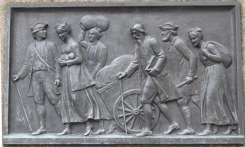Tausende Touristen bevölkern die Berliner Innenstadt, suchen entlang ausgetretener Pfade die bekannten Sehenswürdigkeiten auf. Wer durch die Seitenstraßen geht, kann manche Merkwürdigkeiten entdecken. Auf dem Bethlehemskirchplatz an der Mauerstraße im Bezirk Mitte steht, um ein Beispiel zu nennen, ein seltsames Gebilde, das zu Fragen herausfordert. Die elf Meter hohe, bunt bemalte Skulptur erinnert, so erfährt man auf einer Informationstafel nebenan, an die böhmischen Auswanderer, die aus Glaubensgründen im frühen 18. Jahrhundert aus dem katholisch geprägten Habsburgerreich nach Brandenburg-Preußen flohen und vom Soldatenkönig Friedrich Wilhelm I. mit offenen Armen aufgenommen wurden.