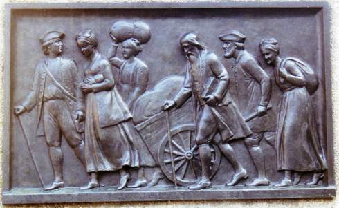 Mit Schubkarren und Kleiderbündeln auf den Schultern kamen im Winter 1732/33 nach beschwerlicher Wanderschaft böhmische Glaubensflüchtlinge in Berlin an und bauten sich eine neue, wenn auch bescheidene Existenz auf. Preußens Soldatenkönig Friedrich Wilhelm I. wies den evangelischen Christen, denen im Reich der katholischen Habsburger das Leben unmöglich gemacht worden war, Wohnraum und Arbeit in der Berliner Friedrichstadt zu und erlaubte den Bau einer kleinen Kirche. Auf dem Standort der 1943 zerbombten Bethlehemkirche im Bezirk Mitte erinnert heute ein riesiger, aus Kunststoff gebildeter Kleiderballen an die Emigranten, denen der Monarch Schutz und Wohlfahrt angedeihen ließ. Alsbald richteten sich die mit einigen Privilegien „begnadeten“ Zuwanderer in Böhmisch-Rixdorf, einem Ortsteil des heutigen Neukölln ein. Spätere Generationen widmeten ihrem königlichen Gönner ein schönes Bronzedenkmal, auf dessen Sockel der mit vielen Hoffnungen verbundene Zug aus Böhmen ins ferne Brandenburg-Preußen geschildert wird.