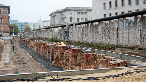 Wenn es nach Plan gegangen wäre, stünde schon seit Jahren auf dem ehemaligen Gestapogelände an der Wilhelmstraße und Niederkirchnerstraße das Informations –und Dokumentationszentrum der Gedenkstätte „Topographie des Terrors“. Für Mai 2010 ist die Eröffnung einer neuen Ausstellungshalle vorgesehen. Das Haus ist ein Bindeglied zwischen dem Jüdischen Museum und dem Denkmal für die ermordeten Juden Europas. Da es bei der Realisierung des ursprünglichen Entwurfs des Schweizer Architekten Peter Zumthor manche Pannen gab und die Kosten in die Höhe schossen, ließ der Senat die schon aufgerichteten Betonelemente abreißen. Damit waren 15 Millionen Euro für Planung und erste Baumaßnahmen in den Sand gesetzt. Das Land Berlin stieg aus dem Projekt aus, und der Bund übernahm die Bauträgerschaft für eine neue Ausstellungshalle.