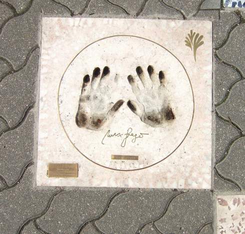 Wer übrigens vor dem Friedrichstadtpalast in der Friedrichstraße steht, sieht rechterhand nicht nur eine Büste der Chansonette Claire Waldoff, sondern in den Boden eingelassene viereckige Platten, die ebenfalls mit Handabdrücken, Sprüchen und Unterschriften an große Vertreterinnen und Vertreter der in diesem Haus gepflegten „leichten Muse“ und der Artistik ehren.