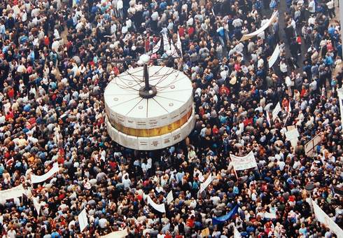 Am 4. November 1989 kamen fast eine Million Ostberliner auf dem Alexanderplatz zur größten freien Demonstration zusammen, die die DDR in ihrer 40jährigen Geschichte gesehen hat. Plakate mit Aufschriften wie „Stasi an die Stanze“, „Öko-Daten ohne Filter“, „Kein Artenschutz für Wendehälse“ oder „Rücktritt ist Fortschritt“ und „Sägt die Bonzen ab - nicht die Bäume“ wurden hoch gehalten, dazu Bilder von Honecker hinter Gittern und eine Karikatur von Egon Krenz als zähnefletschender, Kreide fressender Wolf im Märchen vom Rotkäppchen. Mit Wendehälsen waren jene Leute gemeint, die schnell die Kurve zu kriegen versuchten und behaupteten, schon immer für einen besseren Sozialismus, für Demokratie und Pluralität gewesen zu sein, doch nicht genug Macht und Einfluss gehabt zu haben, diese Forderungen angesichts der Starrsinnigkeit von Honecker & Co. durchzusetzen.