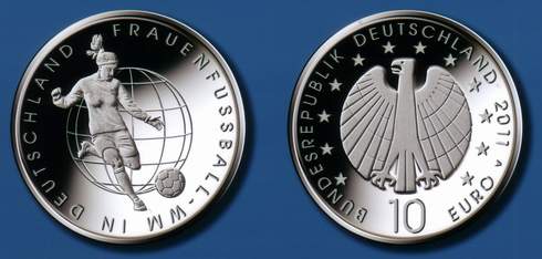 Die jüngst bekannt gewordenen Modelle für die Gedenkmünzen zur Frauenfußball-Weltmeisterschaft, die im Juni und Juli kommenden Jahres an mehreren Spielorten in Deutschland ausgetragen wird, und zur Hundertjahrfeier der Eröffnung des Hamburger Elbtunnels stellen eine schöne Bereicherung von Euro-Sammlungen dar. Die Jury fand den Entwurf von Alina Hoyer besonders bemerkenswert, weil sie eine Fußballerin in einer Spielsituation zeigt, „die sowohl spielerische Eleganz als auch Dynamik ausstrahlt“. Die dezente Weltkugel im Hintergrund sei ein eindeutiger Hinweis auf die WM und ihre weltweite Bedeutung. Hervorgehoben wird bei der Wertseite (Rücksite), dass die Proportionen und die klare grafische Gestaltung gut zur Bildseite (Vorderseite) passt und der Adler mit seinen Schwingen das Motiv der Weltkugel aufnimmt. Das A in der Umschrift auf der Wert- oder Adlerseite signalisiert, dass das Silberstück in der Staatlichen Münze Berlin geprägt wird.