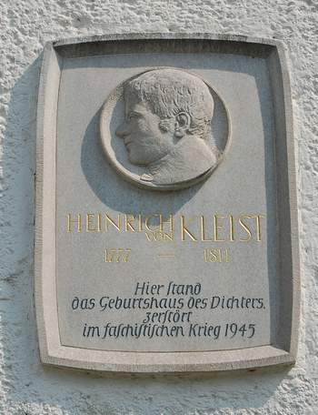 Im Park an der Gertraudkirche ehrt die alte Universitätsstadt Frankfurt an der Oder seit hundert und einem Jahr ihren großen Sohn, den Dichter Heinrich von Kleist. Das Bronzemonument wurde von dem Bildhauer Gottlieb Elster geschaffen und nicht zum einhundertsten Todestag des Dramatikers und Erzählers aufgestellt, sondern schon ein Jahr davor. Man mochte sich nicht gern des tragischen Freitodes des Dichters gemeinsam mit Henriette Vogel am 21. November 1811 am Kleinen Wannsee bei Berlin erinnern und wählte das Jahr 1810 als Bezugspunkt, in dem Kleist am „Prinzen von Homburg“ schrieb und als Journalist in Opposition zu damaligen preußischen Eliten stand. In jüngster Zeit wurde das Monument restauriert und von dicken Schmutzschichten befreit, aber auch gegen vandalische Anschläge durch Graffiti-Schmierer geschützt, die so viele Denkmäler und Gedenkstätte im Land verunstalten.