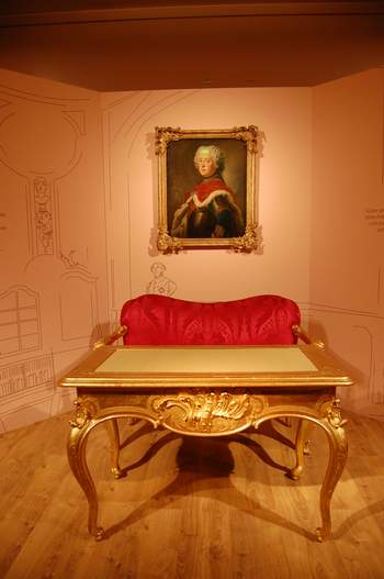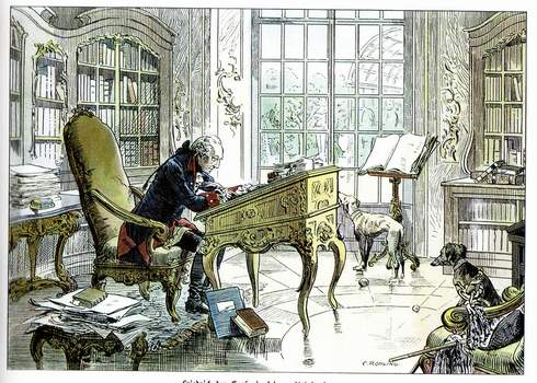 König Friedrich II., genannt der Große, war nicht nur Landesvater und Mann des Degens, er war auch einer, der viel Zeit am Schreibtisch verbrachte. Was er dort mal in zierlicher Schrift, mal krakelig in großen Buchstaben verfasste, ist Thema der Ausstellung „Homme de lettres – Frédéric, der König am Schreibtisch”, die in der Kunstbibliothek am Kulturforum bis zum 30. September gezeigt wird. Ein am Beginn der Dokumentation zum 300. Geburtstag des Monarchen als Leihgabe der Preußischen Schlösserstiftung aufgestellter Schreibtisch aus dem Schloss Sanssouci erinnert daran, dass der König ein ewig schreibender und lesender Mann war. Er hinterließ eine riesige Menge an Befehlen und Briefen, Denkschriften, Gedichten und Kompositionen, die nach seinem Tod am 17. August 1786 in einer stattlichen Reihe von Büchern publiziert wurden.