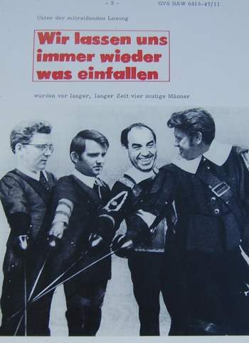 Wer die neu gestaltete Stasi-Gedenkstätte an der Ruschestraße besucht, erfährt nicht nur, wie der DDR-Geheimdienst aufgebaut war und wer seine leitenden Köpfe waren. In den Amtsräumen des früheren Ministers Erich Mielke lernt man neben Ernstem auch manch Skurriles kennen. Hoch geheim eingestufte Festschriften etwa, mit denen Stasi-Offiziere ihr Studium und andere Lehrgänge bejubelten, geben einen Einblick in das Selbstverständnis von Mielkes festangestellter Truppe und ihren Informellen Mitarbeitern. "Wir sind überall" heißt die Losung der Beobachtungskräfte vom 1. Januar bis 31. Dezember jeden Jahres in Anlehnung an einen ehemals populären DDR-Song auf einem dieser Blätter, und auf einem anderen Schmuckumschlag sieht man vier grinsende Stasileute, die wie weiland die legendären Musketiere unter der Überschrift "Wir lassen und immer wieder was einfallen" ihre Klingen kreuzen und sich als Retter der Menschheit vor dem bösen Imperialismus und als Schild und Schwert der Partei aufspielen.