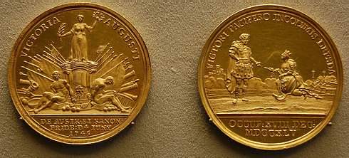 Großen Raum nehmen in der Ausstellung üppig mit Reiterdarstellungen und rauchenden Kanonenrohren geschmückte Kriegsmedaillen ein, es werden verschiedene Friedensschlüsse sowie die Aneignung fremder Ländereien im Ergebnis der Schlesischen Kriege und der Polnischen Teilungen gefeiert. Eine Medaille auf die Schlacht von Zorndorf 1758 behauptet in deutscher Übersetzung, weder durch Qualität noch durch Quantität sei der König zu besiegen, und als fünf Jahre später der Frieden von Hubertusburg zwischen Preußen und seinen Gegnern abgeschlossen wurde, beschworen Medaillen ewige Einigkeit und ein neues Zeitalter voll Frieden und Wohlstand. Wir wissen, dass auch dieser Frieden nicht lange hielt und alle schönen Wünsche in Rauch aufgingen. Das Berliner Münzkabinett ist täglich von 10 bis 18 Uhr, am Donnerstag bis 22 Uhr geöffnet. Der Katalog mit 144 Seiten kostet 14,90 Euro.