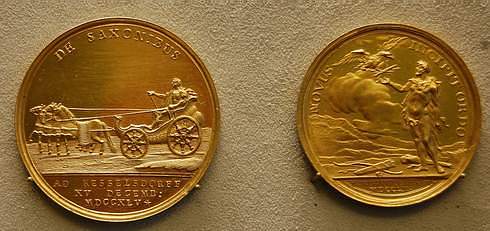 In einer bis zum 14. Oktober 2012 laufenden Ausstellung des Münzkabinetts der Staatlichen Museen Preußischer Kulturbesitz im Bode-Museum auf der Berliner Museumsinsel sind neben zahlreichen Silber- und Goldmünzen des vor 300 Jahren geborenen preußischen Königs Friedrichs II. auch Medaillen ausgelegt, die den Herrscher als Landesvater, Feldherrn, Gesetzgeber und Kunstfreund verherrlichen. Bedeutende Medailleure wie Abraham Abramson, Jacob Abraham, Ludwig Heinrich Barbiez, Nils Georgi, Johann Georg Holtzhey und Daniel Friedrich Loos schufen großartige Prägestücke, die den Ruhm des schon bald einen „Großen“ genannten Königs in alle Welt trugen. Der Titel der Ausstellung „Für 8 Groschen ist’s genug – Friedrich der Große in seinen Münzen und Medaillen“ bezieht sich auf die Legende, nach der der König von Preußen in brenzliger Situation seinen Rekruten zugerufen haben soll „Ihr Racker, wollt ihr ewig leben?“, worauf ihm diese „Fritz, für 8 Groschen ist’s heute genug!“ geantwortet haben sollen. Diese acht Groschen waren der magere, auf fünf Tage verteilte Lohn, für den preußische Soldaten Leben und Gesundheit auf den Schlachtfeldern riskierten und oft genug verloren.