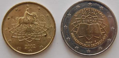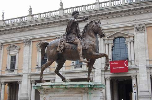 Wer die italienische Hauptstadt besucht, kann auf der Piazza del Colonna die etwa 30 Meter hohe Marcus-Aurelius-Säule und auf dem Kapitolsplatz eine Nachbildung eines Reiterdenkmals bewundern, das den Kaiser mit segnender Geste verherrlicht. Da das Original des einzigen aus der Antike überlieferten Monuents dieser Art sehr empfindlich ist und nicht mehr den Unbilden der Witterung ausgesetzt, wurde es vor einigen Jahren restauriert und im benachbarten Kapitolinischen Museum neu aufgestellt. Die italienische Zwanzig-Cent-Münze bildet das Reiterdenkmal sowie die Konturen der Piazza del Campidoglio ab und setzt damit dem durch seine philosophischen Betrachtungen bis heute verehrten und bewunderten Marcus Aurelius und dem Renaissance-Künstler Michelangelo ein eindrucksvolles numismatisches Denkmal. Außerdem schmückt das gitterartige Pflaster des Platzes die Zwei-Euro-Münze, die 2007 zur Fünfzigjahrfeier der Römischen Verträge in der Bundesrepublik Deutschland und weiteren Mitgliedstaaten geprägt wurde.