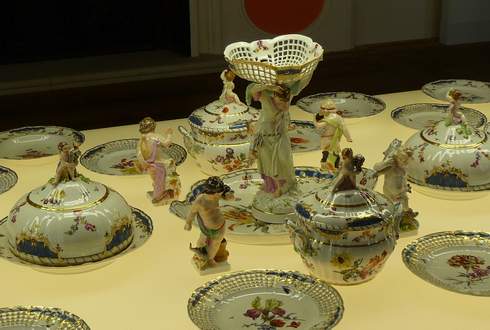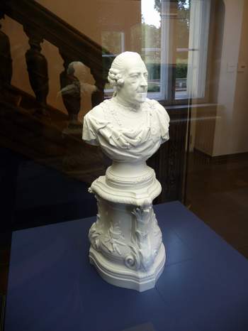 Preußens König Friedrich II., der Große, hatte ein Faible für bunt bemaltes, vergoldetes Porzellangeschirr und dazu gehörige Tafelaufsätze. Für das seit Beginn des 18. Jahrhunderts in Meißen und dann in weiteren Manufakturen produzierte „weiße Gold“ gab er Unsummen aus. Nachdem der Monarch 1763 in Berlin die Königliche Porzellanmanufaktur (KPM) gegründet hatte, konnte er seine Liebe zu der zerbrechlichen Luxusware in vollen Zügen ausleben. Die bis zum 28. Oktober 2012 im Kunstgewerbemuseum Schloss Köpenick gezeigte Ausstellung „Porzellane für die Schlösser Friedrichs des Großen“ schildert anhand von Tellern und Tassen, Schüsseln und Wärmeglocken sowie Tafelaufsätzen und Leuchtern, wie der vor 300 Jahren in Berlin geborene König auf das Design der in der KPM hergestellten Erzeugnisse Einfluss nahm und eigens für jedes seiner Schlösser vielteilige Tafelgeschirre bestellte. Er ließ die Formen und Dekore den Räumen anpassen, in denen er mal in kleiner, mal in großer Runde mit Freunden, Verwandten und Staatsgästen tafelte. Außerdem bestimmte er das Aussehen von kostbaren Services und Tafelaufsätzen, die er als diplomatische Geschenke an andere Fürstenhöfe verschickte. Vor allem bedachte er die russische Zarin Katharina II., die Große, mit solchen.