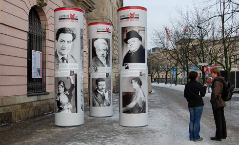 Achtzig Jahre nach der Errichtung der NS-Diktatur am 30. Januar 1933 und 75 Jahre nach dem Novemberpogrom am 8./9. November 1938 finden in Berlin im Rahmen des Themenjahrs „Zerstörte Vielfalt“ über fünfhundert Veranstaltungen an einhundert Orten statt - Ausstellungen, Vorträge, Gesprächsrunden, Lesungen und Konzerte. Überall in der Stadt aufgestellte Litfaßsäulen und Stelen schildern, wie vor 80 Jahren aus dem „roten“ Berlin der Weimarer Republik ein braunes Berlin gemacht und wie der Ruf der Metropole als Inbegriff des wissenschaftlich-technischen Fortschritts und der kulturellen Moderne von den Nazis systematisch ruiniert wurde. Die unweit des Brandenburger Tors und an anderen Orten aufgestellten Gedenksäulen machen auf Biographien verfolgter und ermordeter Menschen aufmerksam und zeigen, wo in Deutschlands dunkelster Zeit unvorstellbare Verbrechen geplant und überwacht wurden.