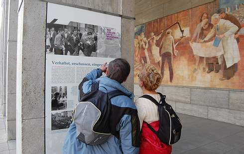 Die Bundesstiftung zur Aufarbeitung der DDR-Diktatur zeigt in der Säulenhalle des Bundesfinanzministeriums an der Ecke Leipziger Straße/Wilhelmstraße eine Dokumentation zur Geschichte und den Folgen des Volksaufstands am 17. Juni 1953 in der DDR. Der Ausstellungsort könnte nicht besser gewählt sein, denn vor dem damaligen Haus der Ministerien der DDR demonstrierten vor nunmehr 60 Jahren tausende Menschen für freie Wahlen und bessere Lebensverhältnisse sowie den Abzug der sowjetischen Soldaten aus der DDR und die Abschaffung der SED-Diktatur, worauf sie von Panzern der Roten Armee attackiert und zur Aufgabe gezwungen wurden. Die Freiluftausstellung „Wir wollen freie Menschen sein“ schlägt einen Bogen von den bedrückenden Ursachen der Erhebung, die in der Berliner Stalinallee mit der Forderung nach besseren Löhnen und Rücknahme kaum zu schaffender Arbeitsnormen ihren Anfang nahm und binnen weniger Stunden die DDR ergriff, bis zur unbarmherzigen Abrechnung nach der Niederschlagung des Aufstandes, an dem eine Million Menschen in großen und kleinen Städten, aber auch auf dem Land beteiligt waren.
