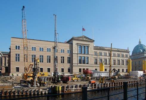 Nicht 2014, sondern erst 2017 wird die James-Simon-Galerie, das neue Eingangsgebäude für die Museumsinsel, eröffnet, und auch die Kosten steigen von geplanten 71 auf 98,8 Millionen Euro. Bei der Grundsteinlegung in der vergangenen Woche (= 18. 10.) begründete Hermann Parzinger, der Präsident der Stiftung Preußischer Kulturbesitz, die Verzögerungen und Kostensteigerung damit, dass der sumpfige Baugrund am Rand des Kupfergrabens massive und teure Gründungsmaßnahmen erforderte, außerdem sei eine Tiefbaufirma zwischendurch pleite gegangen und ausgeschieden. Immerhin hätten sich die anderen Baumaßnahmen auf der Museumsinsel im Kosten- und Zeitrahmen bewegt. Bei der Sanierung des Neuen Museums, das künftig hinter der von David Chipperfield entworfenen James-Simon-Galerie stehen wird, sind 40 Millionen Euro eingespart worden.